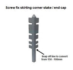 The end cap/corner stakes are plastic which have snap off legs which convert the corners to end caps, they come to suit 150mm which have snap off line to convert to 100mm.