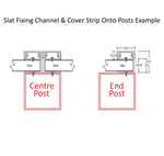 The Slat Fixing Channel & Cover Strip sections are designed to be affixed to the front of a post. The cap will only fit on with the longer leg towards the open part of the channel.